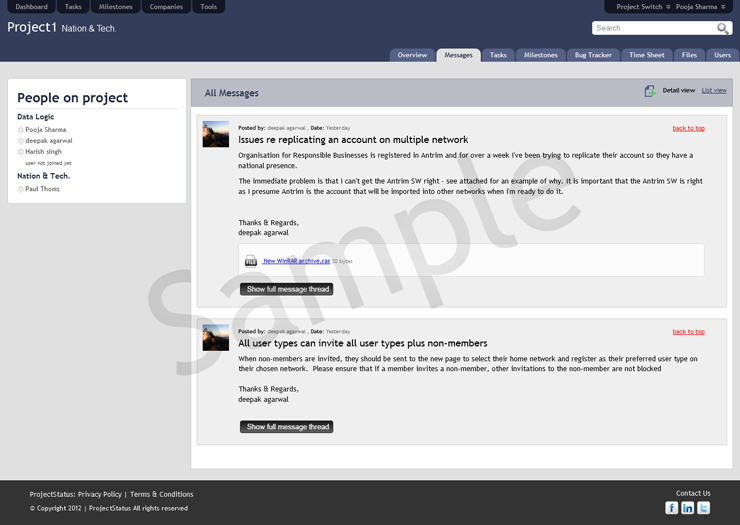 Conceived by industry mavens Project Status is a versatile Project Management Tool that will allow you to keep yourself updated with new developments that are taking place on different projects initiated by your organisation at one click. The tool has been developed not only for business entrepreneurs but also for their clients making it easier for them to know about the progress of work related with their project. At Project Status we have successfully initiated more than 6000 projects by making use of this tool and wish that you should also enjoy the same success as we have had!!!